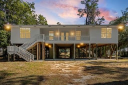 Welcome to beautiful Dauphin Island. This completely renovated raised beach house is tucked away among the trees mid-island and ready to move in. With every surface touched, this property features 3 bedrooms, 2 baths, a very spacious great room with an oversized sunroom. The living room has a cathedral ceiling & feels extra spacious with all the natural lighting.The open-concept kitchen offers plenty of cabinetry, an island, farmhouse sink, granite countertops, stainless steel appliances (refrigerator, electric range, dishwasher, microwave), tiled back splash and a pantry. The laundry room off the kitchen has space for an extra refrigerator or freezer. The primary bedroom offers two closets, a private bath with double sinks, luxury shower, and plenty of storage with the added linen closet. The hall bath features a tub/shower combo, dual sinks, and linen closet splitting the two guest bedrooms. With crown molding, light and airy smooth walls and ceilings throughout, this home is ready for its next owner to enjoy island living at its best. Under the house, there’s an abundance of storage, entertaining and parking arrangements here. Enjoy stunning sunsets and sunrises, world-class fishing, and a welcoming atmosphere that makes this island so special. Buyer to verify all information during due diligence.