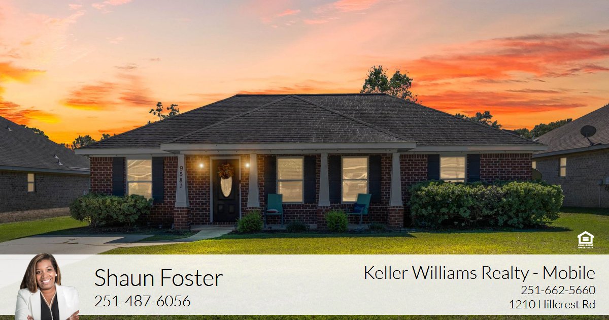 VRM, Seller will entertain offers between $210,000 and $230,000. Located in a USDA eligible area, welcome to 9581 Estate Dr. in Spring Brook Villas - an updated all-brick Craftsman with brand-new luxury vinyl plank flooring, fresh interior paint, and a bright, open layout designed for modern living. The spacious living room features a tray ceiling, flowing into a charming eat-in kitchen with beautiful cabinetry, and French doors leading to a fully fenced backyard. This split bedroom floor plan offers a private primary suite with a walk-in closet and en-suite bath, plus two additional bedrooms with large walk-in closets connected by a rare Jack-and-Jill bathroom, along with a convenient half bath for guests. Built in 2013 and located in the desirable Baker High School district, this move-in-ready home delivers comfort, convenience, and style in one of West Mobiles most popular neighborhoods. The electric fireplace, televisions and refrigerator do not convey. Listing broker makes no representation as to the accuracy of square footage. Buyer to verify square footage and all other pertinent information.