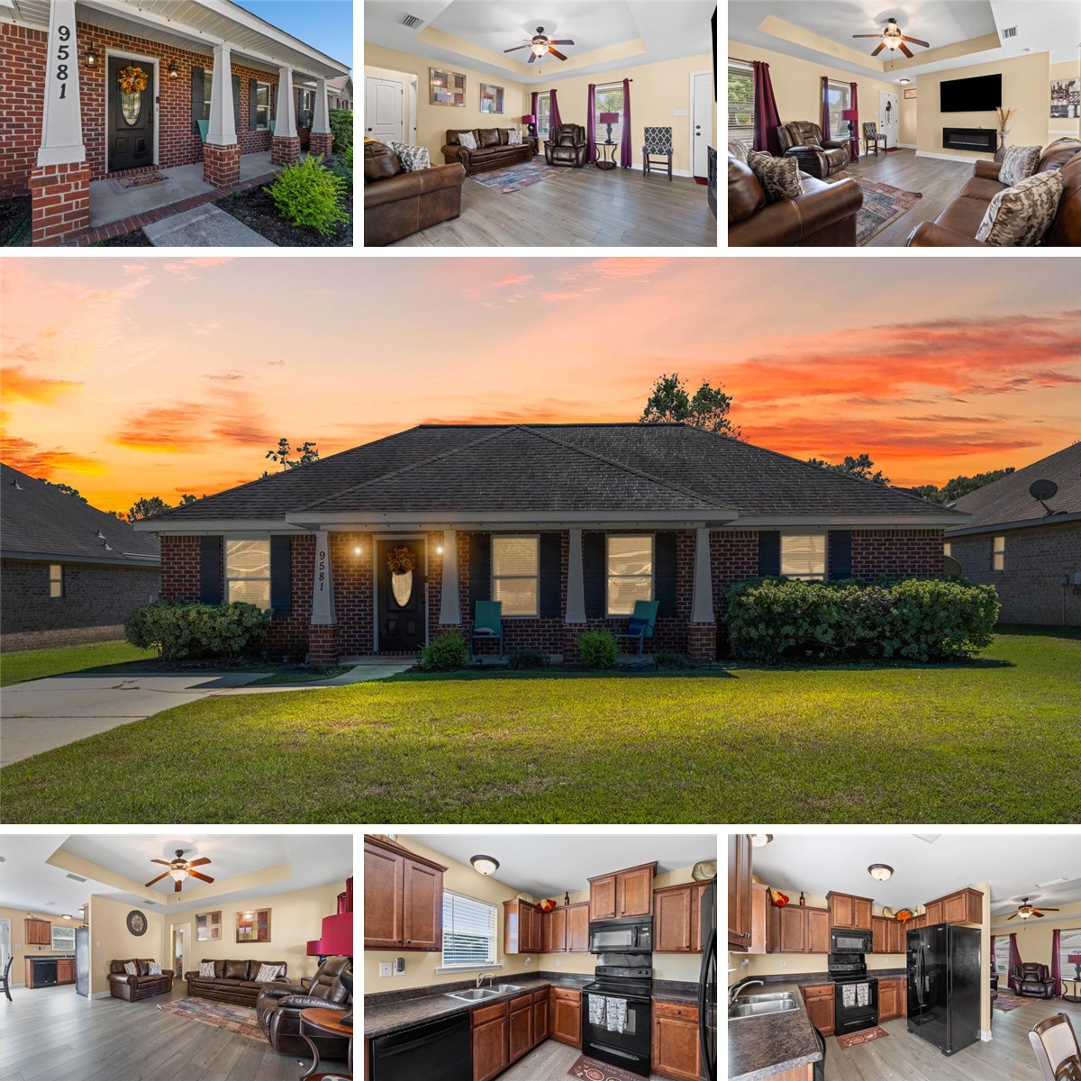 VRM, Seller will entertain offers between $210,000 and $230,000. Located in a USDA eligible area, welcome to 9581 Estate Dr. in Spring Brook Villas - an updated all-brick Craftsman with brand-new luxury vinyl plank flooring, fresh interior paint, and a bright, open layout designed for modern living. The spacious living room features a tray ceiling, flowing into a charming eat-in kitchen with beautiful cabinetry, and French doors leading to a fully fenced backyard. This split bedroom floor plan offers a private primary suite with a walk-in closet and en-suite bath, plus two additional bedrooms with large walk-in closets connected by a rare Jack-and-Jill bathroom, along with a convenient half bath for guests. Built in 2013 and located in the desirable Baker High School district, this move-in-ready home delivers comfort, convenience, and style in one of West Mobiles most popular neighborhoods. The electric fireplace, televisions and refrigerator do not convey. Listing broker makes no representation as to the accuracy of square footage. Buyer to verify square footage and all other pertinent information.